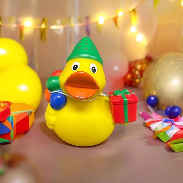 Bring a splash of party cheer to bathtubs and shelves with the Happy Birthday Rubber Duck. This 3-inch collectible is dressed for celebration, complete with a colorful party hat and a bright balloon accent. Its playful design makes birthdays extra special, adding a festive touch to gift bags, party tables, and display collections alike. Whether you’re surprising a collector or searching for a memorable party favor, this little duck brings laughter and lighthearted fun to birthday moments, big or small.